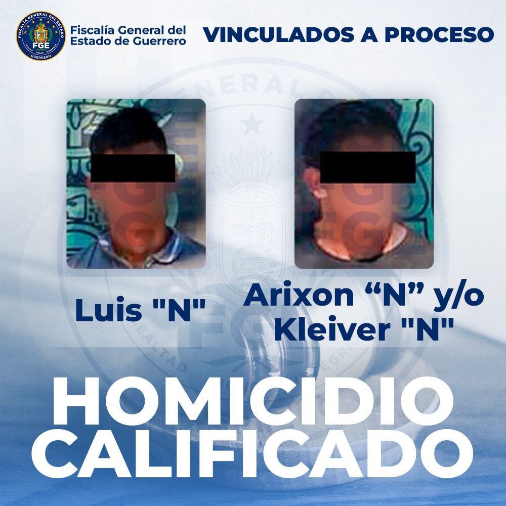 Chilpancingo, Gro., a 20 de enero de 2026.– La Fiscalía General del Estado de Guerrero informa que, con fecha 19 de enero de 2026, obtuvo la vinculación a proceso de Luis “N” y Arixon y/o Kleiver “N”, por el delito de Homicidio Calificado, en agravio de Carlos “N”, por hechos ocurridos en el municipio de Acapulco de Juárez, Guerrero.