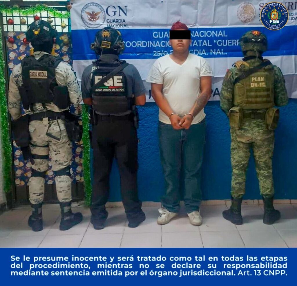 FGE Guerrero, Sedena, GN y SSP Guerrero, detienen a Juan “N” alias “La Calandria” por el homicidio de tres personas en Acapulco