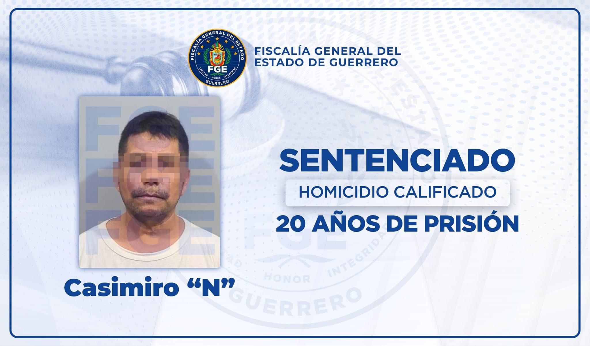 FGE Guerrero sentencia a 20 años de prisión a Casimiro “N” por homicidio calificado en Ayutla de los Libres