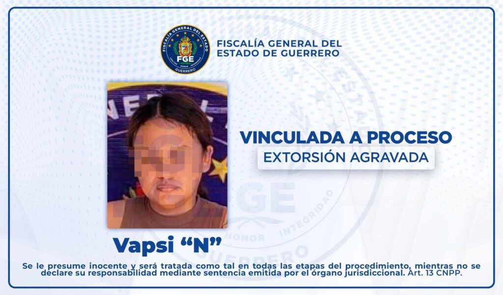 FGE Guerrero vincula a proceso a Vapsi “N” por extorsión agravada en Teloloapan
