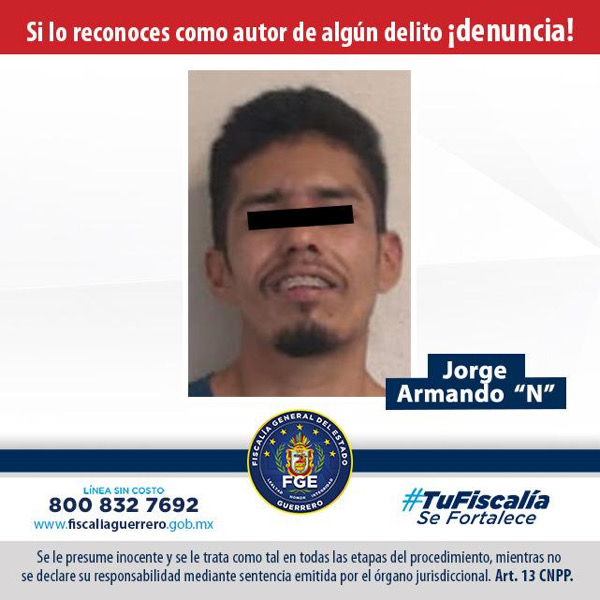 La Fiscalía General del Estado, obtuvo del Juez de Control la vinculación a proceso en contra de Jorge Armando “N”, alias “El Limón” o el “Punki”, señalado de pertenecer al grupo delictivo de José Ángel “P” alias “El Capuchino”.