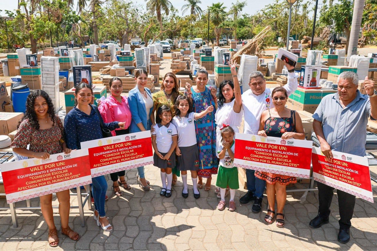 Acapulco, Gro., 15 de febrero de 2024.- Con el propósito de fortalecer el programa de atención a niñas y niños que cursan educación básica, la gobernadora Evelyn Salgado Pineda en coordinación con el DIF Guerrero, entregó equipo para la instalación de Comedores Escolares Comunitarios en 50 escuelas que resultaron afectadas por el huracán Otis. En esta acción se invierten más de 3 millones de pesos, destinados a 15 planteles de Coyuca y 35 de Acapulco, lo que permitirá mejorar la alimentación y garantizar el pleno bienestar de la niñez, acompañando su desarrollo integral en esta importante etapa.