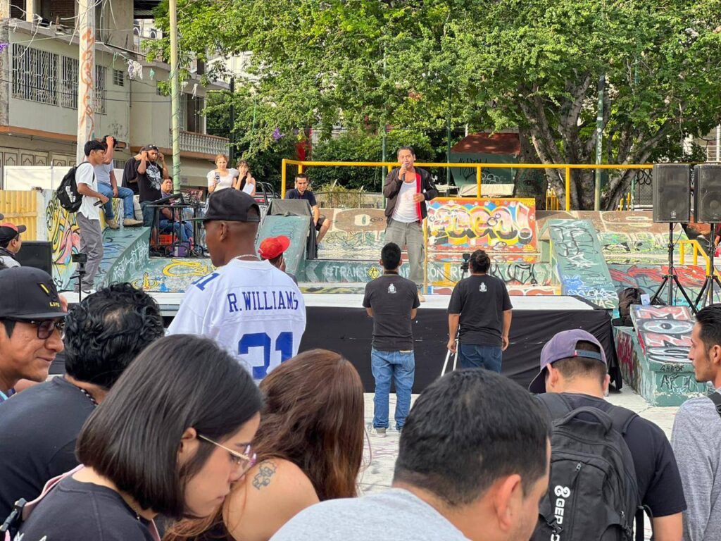La SEJUVE en conjunto con el instituto de la juventud del ayuntamiento de Chilpancingo, realizaron un encuentro denominado “HipHop Guerrero”, en las inmediaciones del parque Skate plaza Chilpancingo, participando personas de todas las edades y donde además de disfrutar de un concierto de Rap y de un encuentro a micrófono abierto Freestyle, pudieron presenciar el conversatorio “El arte de la palabra de rap, aprendizaje y rimas” por parte de MC´S.