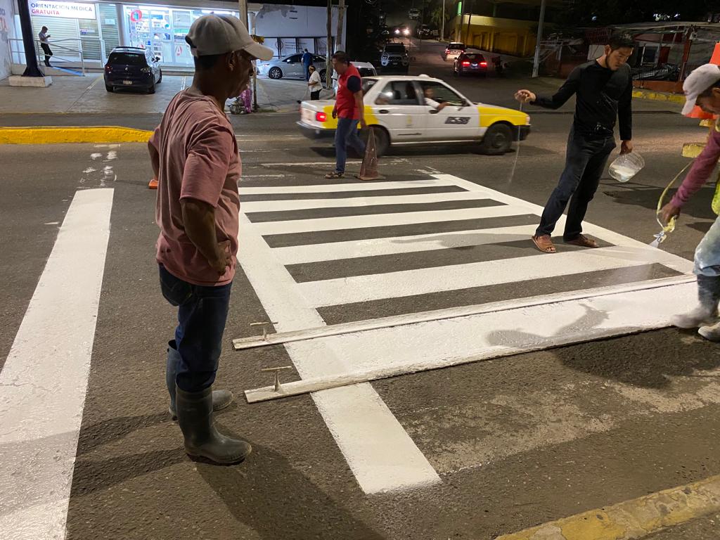 El director de la dependencia, Pascual Díaz López, indicó que se pintaron las guarniciones del camellón central y calles aledañas de Barra Vieja, así como más de 100 cruces peatonales en la avenida Costera Miguel Alemán, desde Base Naval hasta llegar a Caleta.