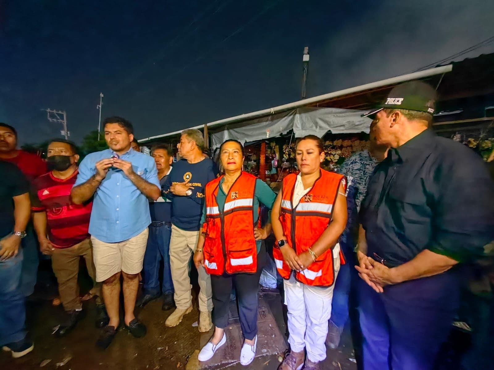La Presidenta Municipal, Abelina López Rodríguez, acudió personalmente al lugar del incidente, donde recorrió la zona afectada y dialogó con los locatarios, reiterando su compromiso de brindar apoyo a los afectados y de tomar las medidas necesarias para garantizar la seguridad en el área.