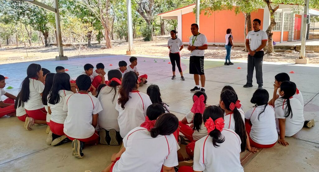 San Luis Acatlán, Gro., a 04 de abril del 2025.- Con la participación de aproximadamente 400 alumnos de las secundarias “Gral. Justo Sierra” y “Secundaria Técnica #36 José María Morelos y Pavón”, de San Luis Acatlán, se llevó a cabo un taller de iniciación en Béisbol 5 en modalidad escolar, con el objetivo de fomentar la actividad física y el descubrimiento de nuevos talentos deportivos en la entidad, como lo ha instruido la gobernadora, Evelyn Salgado Pineda.