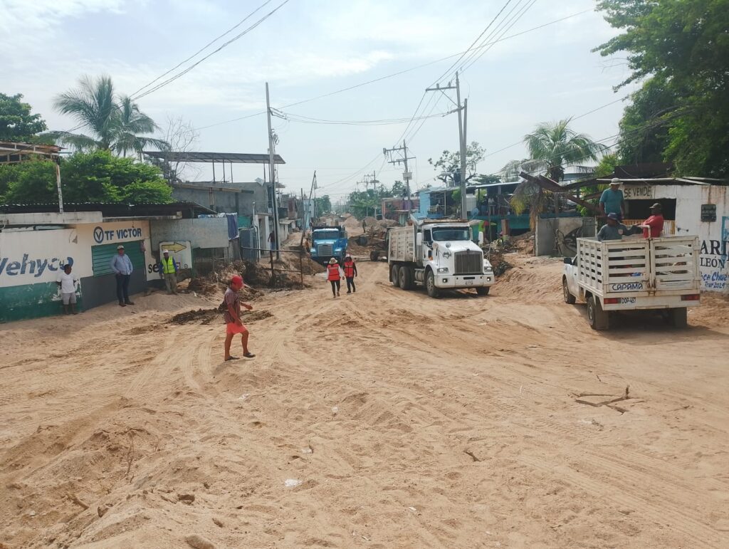 Maquinaria pesada y camiones de volteo ya se encuentran operando en las principales calles y avenidas, entre ellas las calles 1, 2, 10 y 13, para restablecer la actividad cotidiana de la población.