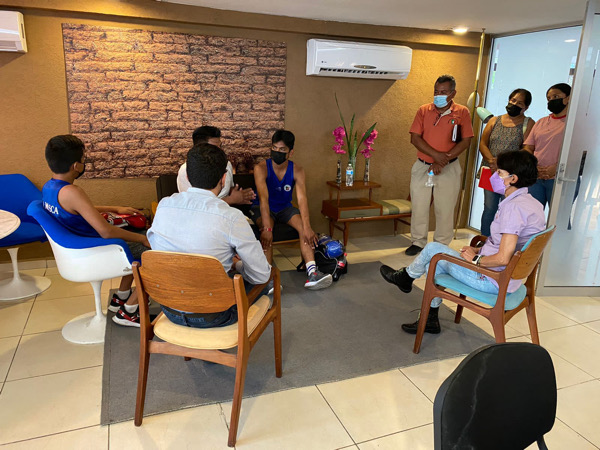 Acapulco, Gro., 14 de julio 2022.- La titular del Instituto del Deporte de Guerrero (INDEG), Alma Rocío López Bello, junto al subsecretario para el Desarrollo de la Juventud y la Niñez en Guerrero, Luis Alberto Salvador Sierra, en representación de la titular de la Secretaría de la Juventud en el estado, Jessica Maldonado Morales, y el presidente de la Asociación Estatal de Boxeo del Estado de Guerrero, Pablo Miranda Sierra, atendieron a Eduardo Matamoros Fierros, entrenador y padre del boxeador Gabriel “La Mosca” Matamoros, de 14 años, quien busca asistir al torneo amateur “Puñitos de oro” en la Ciudad de México.