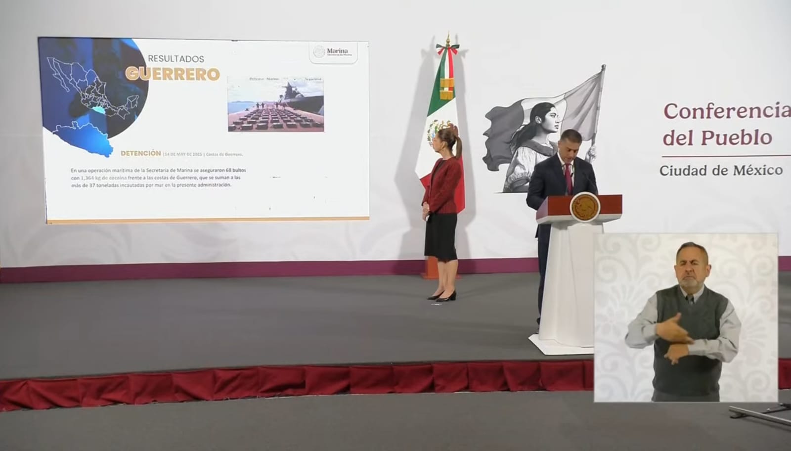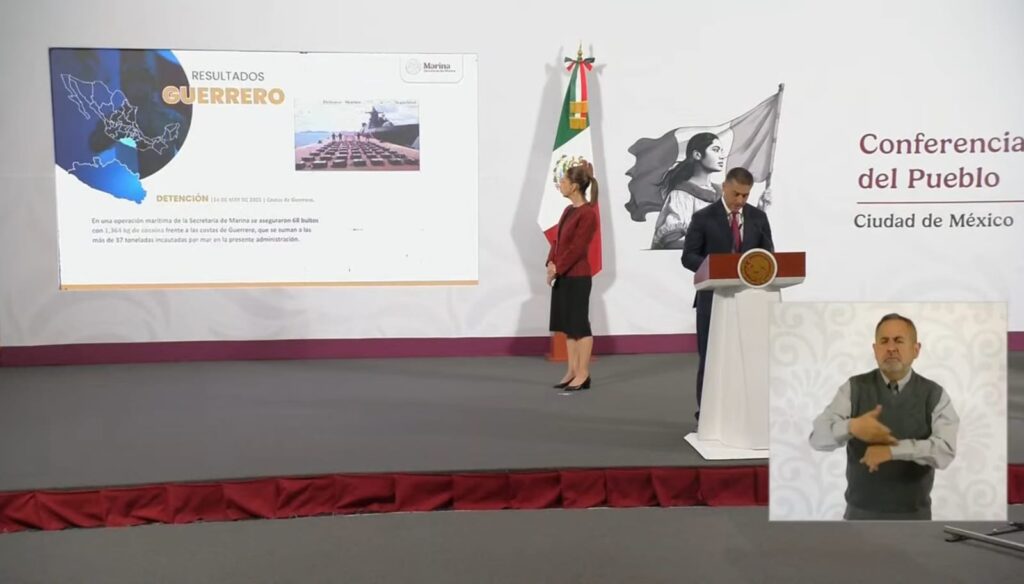 Ciudad de México. 20 de mayo del 2025. – El secretario de Seguridad y Protección Ciudadana, Omar García Harfuch, informó el aseguramiento de 1,364 kilogramos de cocaína en las costas de Guerrero, resultado de una operación conjunta con la Secretaría de Marina.