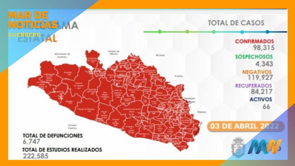 Desde el inicio de la pandemia, en Guerrero se acumulan 98,315 casos confirmados y 6,747 defunciones a causa del COVID-19