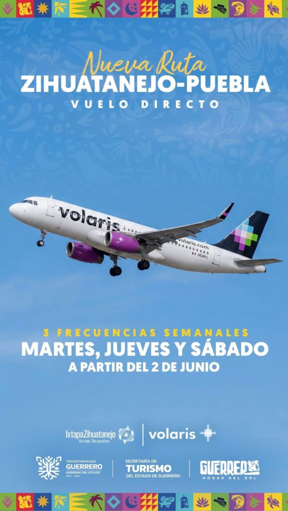 La aerolínea Volaris anunció la apertura de dos nuevas rutas hacia Guerrero, que iniciarán operaciones a partir del 2 de junio de 2026. La primera conectará Acapulco – Querétaro, con tres frecuencias semanales los días martes, jueves y domingo, fortaleciendo la conectividad del puerto con la región del Bajío. La segunda ruta será Zihuatanejo – Puebla, también con tres frecuencias semanales, los días martes, jueves y sábado, ampliando la oferta aérea hacia la Costa Grande.