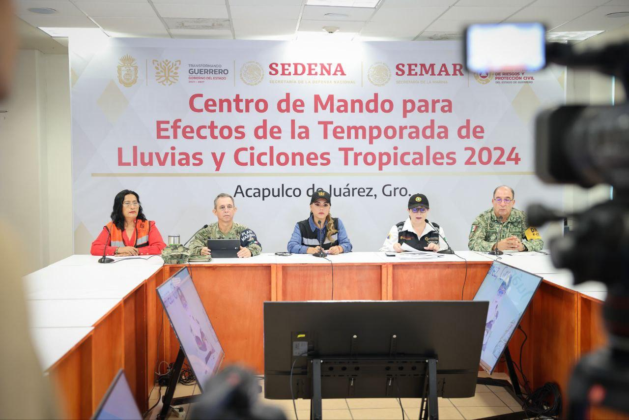 Con la presencia de la coordinadora nacional de Protección Civil, Laura Velázquez Alzúa, la mandataria estatal destacó el apoyo de los cuerpos de emergencia que, arriesgando su vida, han realizado labores día y noche para rescatar a las personas. Tal es el caso de tres personas que fueron rescatadas vía aérea en el Río Huacapa; cinco familias que fueron evacuadas mediante una tirolesa en la comunidad de Las Ramaditas tras el socavón que se presentó en San José del Río, en la Costa Chica y el operativo permanente en Acapulco, en el que participan 33 motos acuáticas, lanchas, un catamarán, así como personal.