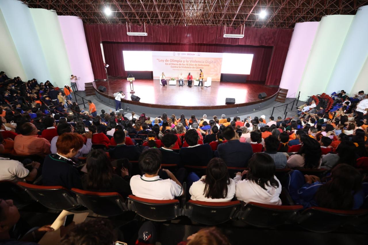 El evento en el teatro “María Luisa Ocampo”, reunió a estudiantes de diversas instituciones educativas, quienes conocieron el alcance y los objetivos de las reformas a la Ley General de Acceso de las Mujeres a una Vida Libre de Violencia y al Código Penal Federal, que reconocen y sancionan la violencia digital y delitos que violan la intimidad sexual de las personas mediante medios electrónicos.