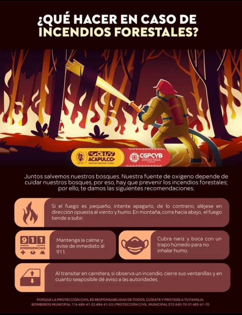 El Gobierno Municipal que preside Abelina López Rodríguez mantiene disponibles los números de Protección Civil 744 483 8328 y 744 485 6170, así como el 072, además del Departamento de Bomberos 744 484 4123 y la línea 911 para la atención inmediata de reportes ciudadanos.