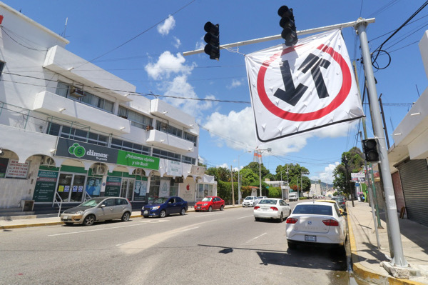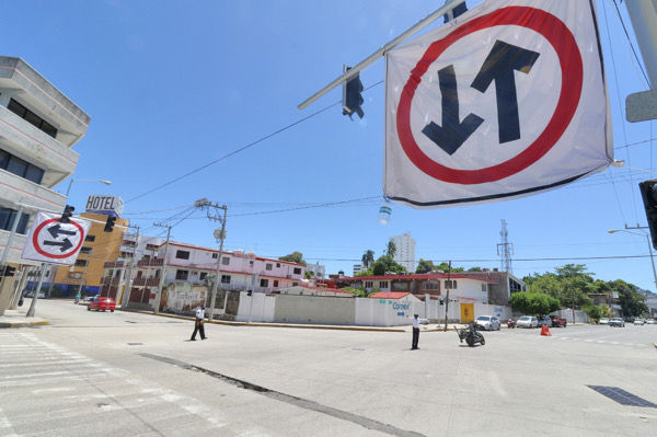 Acapulco, Gro., 01 de septiembre de 2020.-Para reducir la carga vehicular y agilizar el tránsito en la zona del fraccionamiento Hornos, fue habilitada temporalmente la circulación en doble sentido sobre la calle Andrés de Urdaneta.