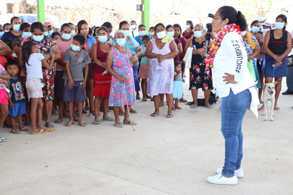 La candidata a la alcaldía de Acapulco por MORENA; Abelina López Rodríguez, visitó este domingo los poblados de Barrio Nuevo de los Muertos y Guamuchitos, en donde se comprometió a llevar agua potable a los hogares de la zona.