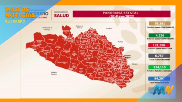 Desde el inicio de la pandemia, en Guerrero se acumulan 98,381 casos confirmados y 6,757 defunciones a causa de la pandemia, de acuerdo con el informe “COVID-19 Guerrero”, que actualiza diariamente Salud estatal.