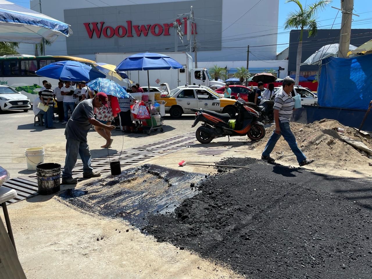 Además de bacheo, se realiza el retiro de escombros y demolición de roca en Cumbres de Llano Largo, calle Quetzal y Reforma a la altura de la Unidad Deportiva Vicente Suárez, así como en la calle Almirante Andrea Doria en Costa Azul.