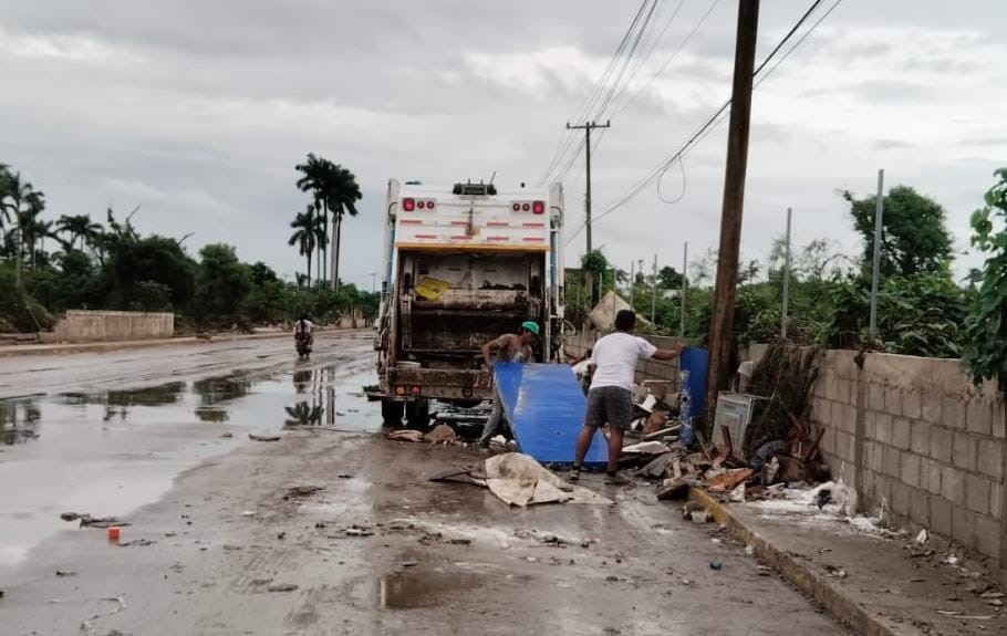 La Dirección de Saneamiento Básico, trabaja día y noche para recoger las toneladas de basura generadas tras el paso del fenómeno meteorológico y reanuda de manera paulatina las rutas de los camiones recolectores en las colonias.