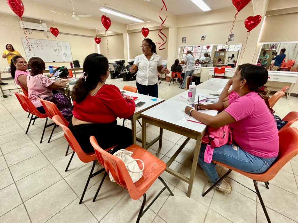 El Instituto Municipal de la Juventud (IMJUVE), en conjunto con el CECATI, brinda a los estudiantes los conocimientos teóricos y prácticos para la decoloración y fijación de tinte.