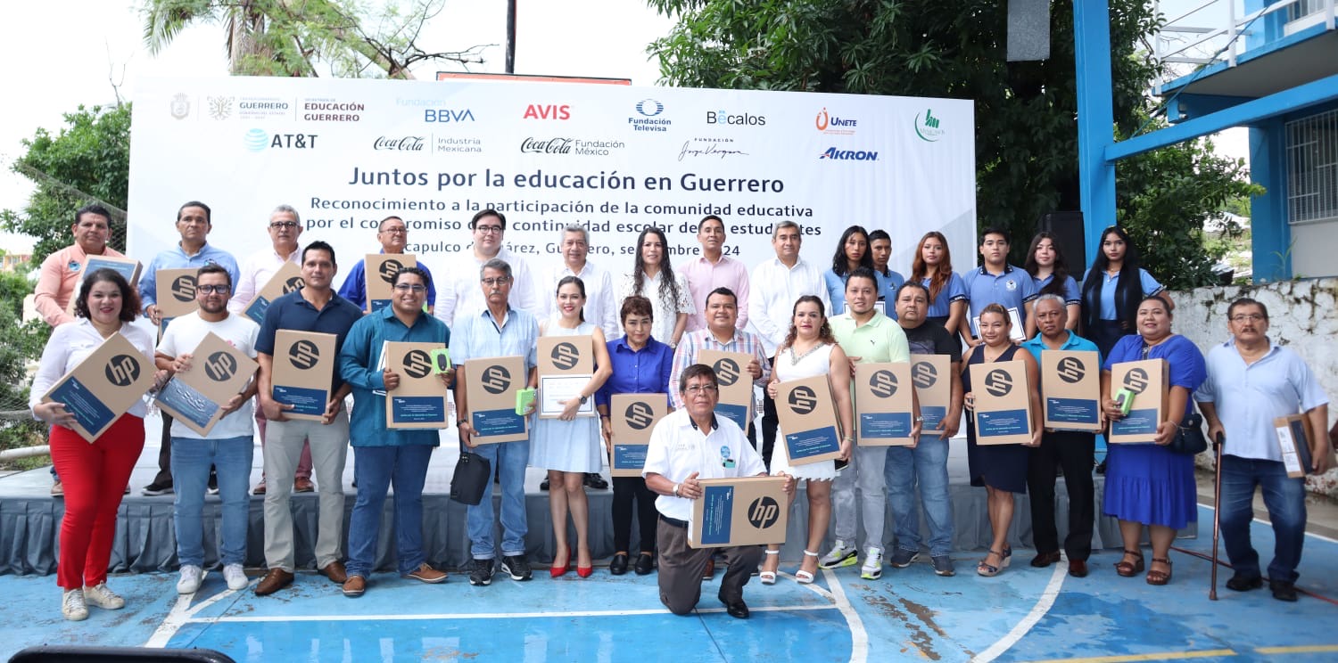 Chilpancingo, Gro., 10 de septiembre de 2024.- Como parte de la estrategia “Juntos por la Educación en Guerrero”, impulsada por la gobernadora, Evelyn Salgado Pineda se entregaron 65 laptops a docentes y 269 becas a estudiantes de tres escuelas de Acapulco.