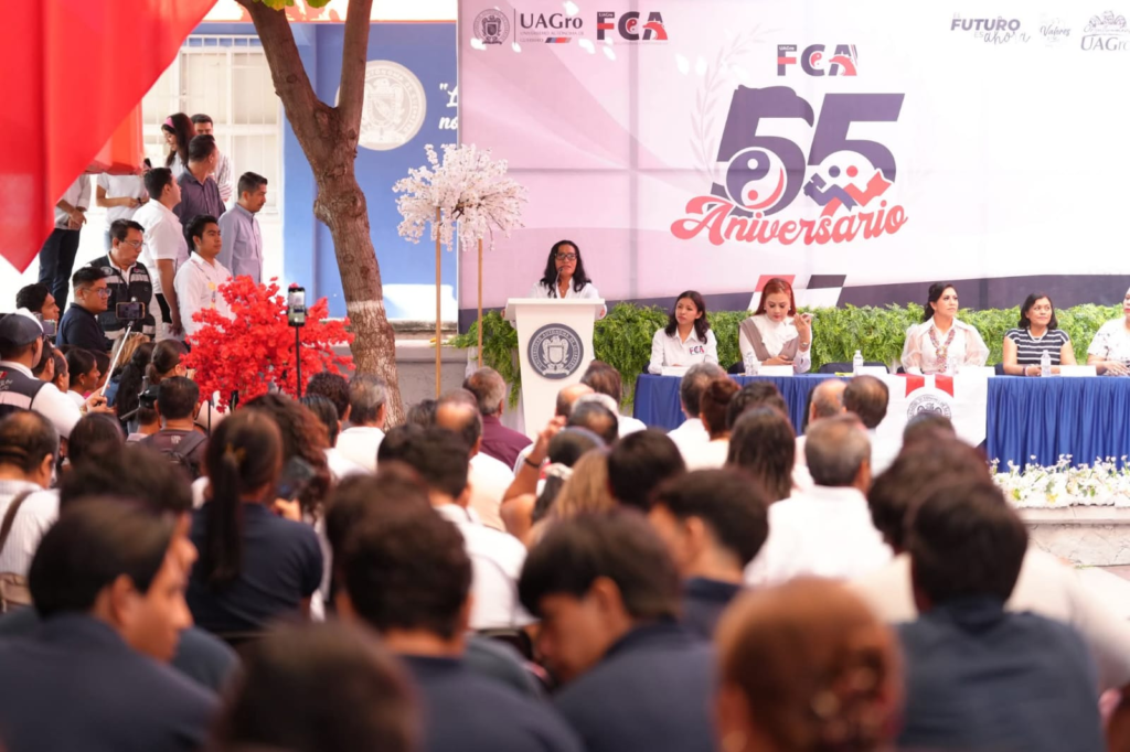 Acapulco, Gro., 01 de diciembre de 2025.- La presidenta Abelina López Rodríguez asistió como invitada especial a la Facultad de Contaduría y Administración (FCA) de la Universidad Autónoma de Guerrero (UAGro), donde inauguró de manera formal las actividades conmemorativas por el 55 aniversario de esta institución académica.
