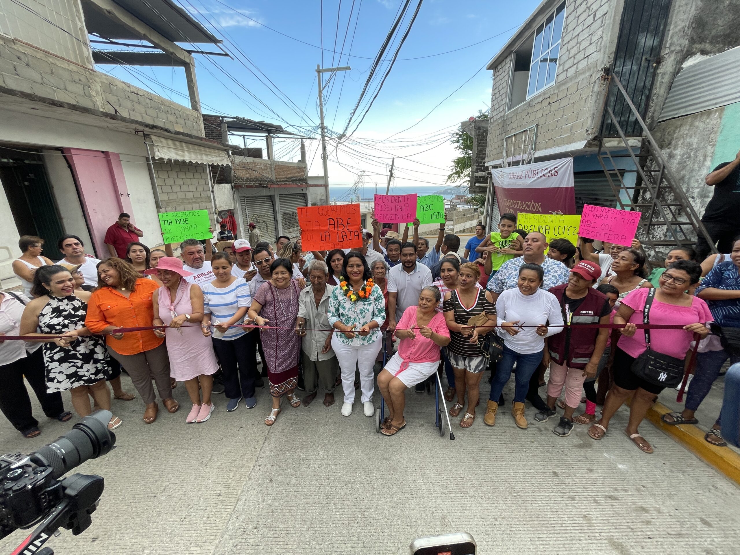 Acapulco, Gro., 31 de agosto de 2023.- La Presidenta Abelina López Rodríguez, informó que se alista una reunión con el futuro titular de la Comisión Nacional del Agua (Conagua), para lograr proyectos en materia de agua potable para Acapulco, afirmó lo anterior al inaugurar este fin de semana, obras viales por 11 millones 145 mil 059 pesos en colonia La Laja y el fraccionamiento Magallanes.