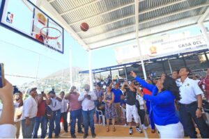 Acapulco, Gro., 29 de enero de 2023.*- Cumpliendo su palabra con la base trabajadora de la Comisión de Agua Potable y Alcantarillado del Municipio de Acapulco (Capama), la presidenta municipal de Acapulco, Abelina López Rodríguez, inauguró la primera etapa del techado de la cancha de usos múltiples en la Casa del Trabajador de la paramunicipal, ubicada en la colonia Bella Vista.