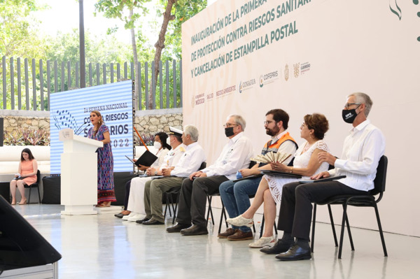 En este acto, con la directora general del Servicio Postal Mexicano (Sepomex), Rocío Bárcena Molina, también se realizó la cancelación de la estampilla postal alusiva al evento, que será distribuida en 191 países alrededor del mundo.