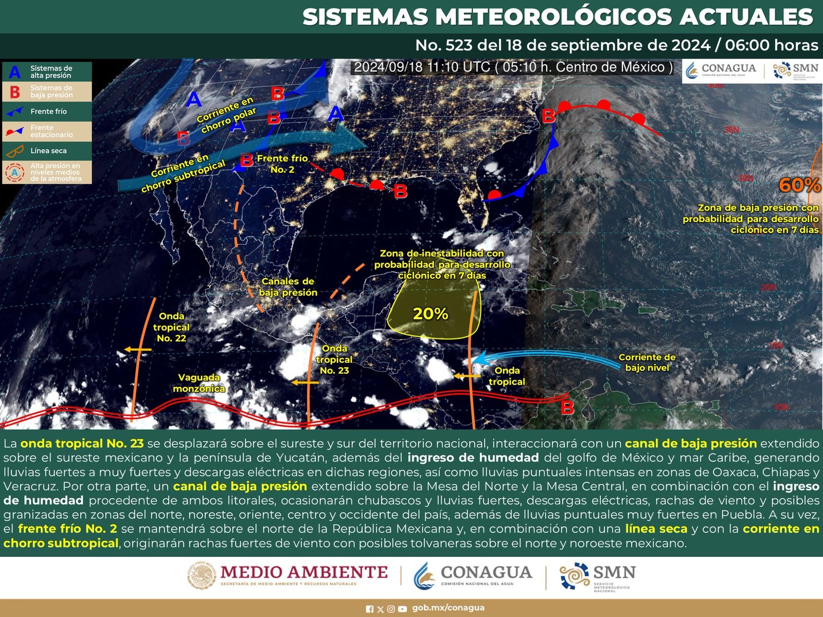 A la población en general se le pide estar atenta a los avisos y recomendaciones de Protección Civil a través de los canales oficiales y ubicar su refugio temporal más cercano.