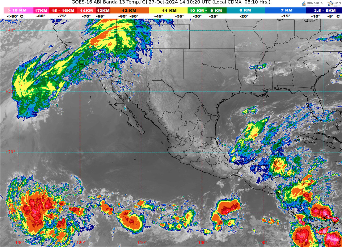 De acuerdo con el reporte matutino del Servicio Meteorológico Nacional (SMN), para este domingo, dos amplios Sistemas Anticiclónicos, uno ubicado sobre el Golfo de Cortés y otro sobre el Cuba, debilitarán el desarrollo de nubes, por lo que se espera un día mayormente soleado y muy caluroso pero con madrugada y mañana muy frías, además, de baja probabilidad de lluvia en Guerrero.