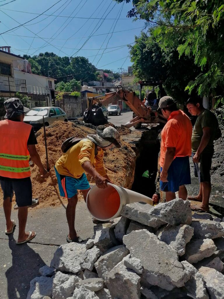El director operativo de la Comisión de Agua Potable y Alcantarillado del Municipio de Acapulco (Capama), Alejandro Sotelo Urióstegui, supervisó la colocación de los primeros 20 metros de tubería de 12 pulgadas por donde se conducen las aguas residuales de todas las viviendas ubicadas en esta zona y que había presentado colapsamiento hace algunas semanas.