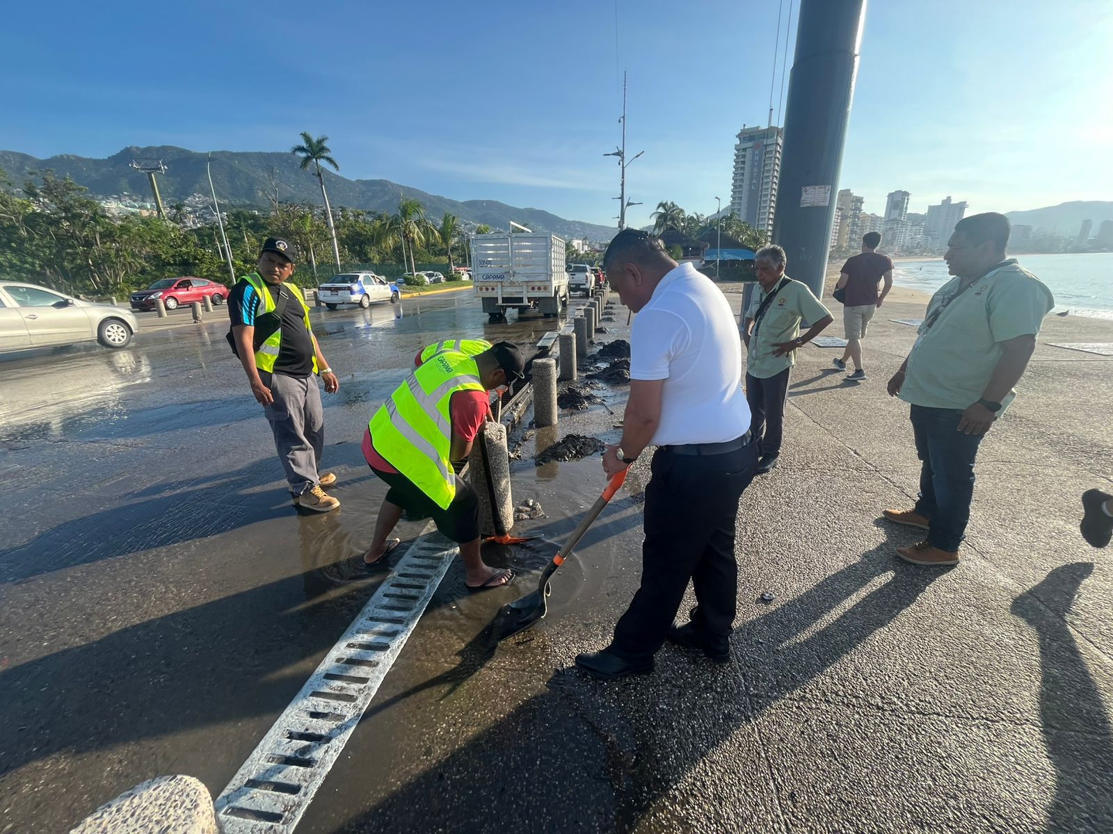 El director general de la CAPAMA, Hugo Lozano Hernández supervisó la mañana de este miércoles los trabajos que se realizan en la brigada emergente de desazolve de pozos de visita y limpieza de rejillas en diferentes puntos del puerto, tanto en la zona urbana, conurbada, centro y zona poniente, priorizando la Costera Miguel Alemán.