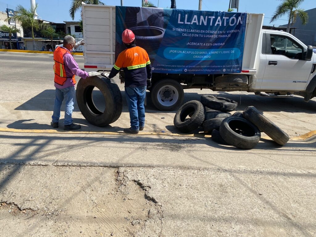 Acapulco, Gro., 26 de enero de 2023.*- Para prevenir la proliferación del mosquito trasmisor del dengue Aedes aegypti y concientizar a la población sobre la protección al medio ambiente, el Gobierno Municipal, en coordinación con la Fundación Holcim México y Geocycle, pusieron en marcha el programa “Llantatón 2023”.