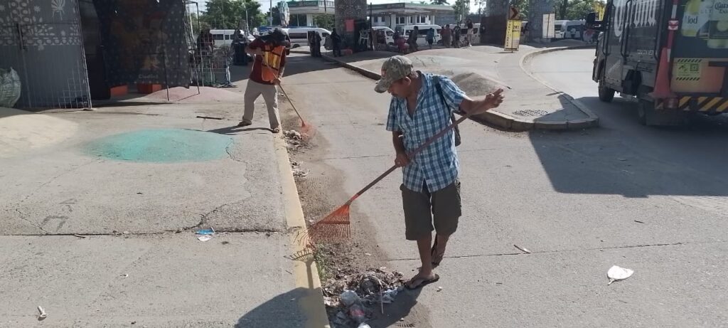 La funcionaria detalló que el personal realiza tareas de barrido manual y fino, para dejar las áreas en óptimas condiciones para ciudadanos locales y turistas que visitan el puerto durante el fin de semana.