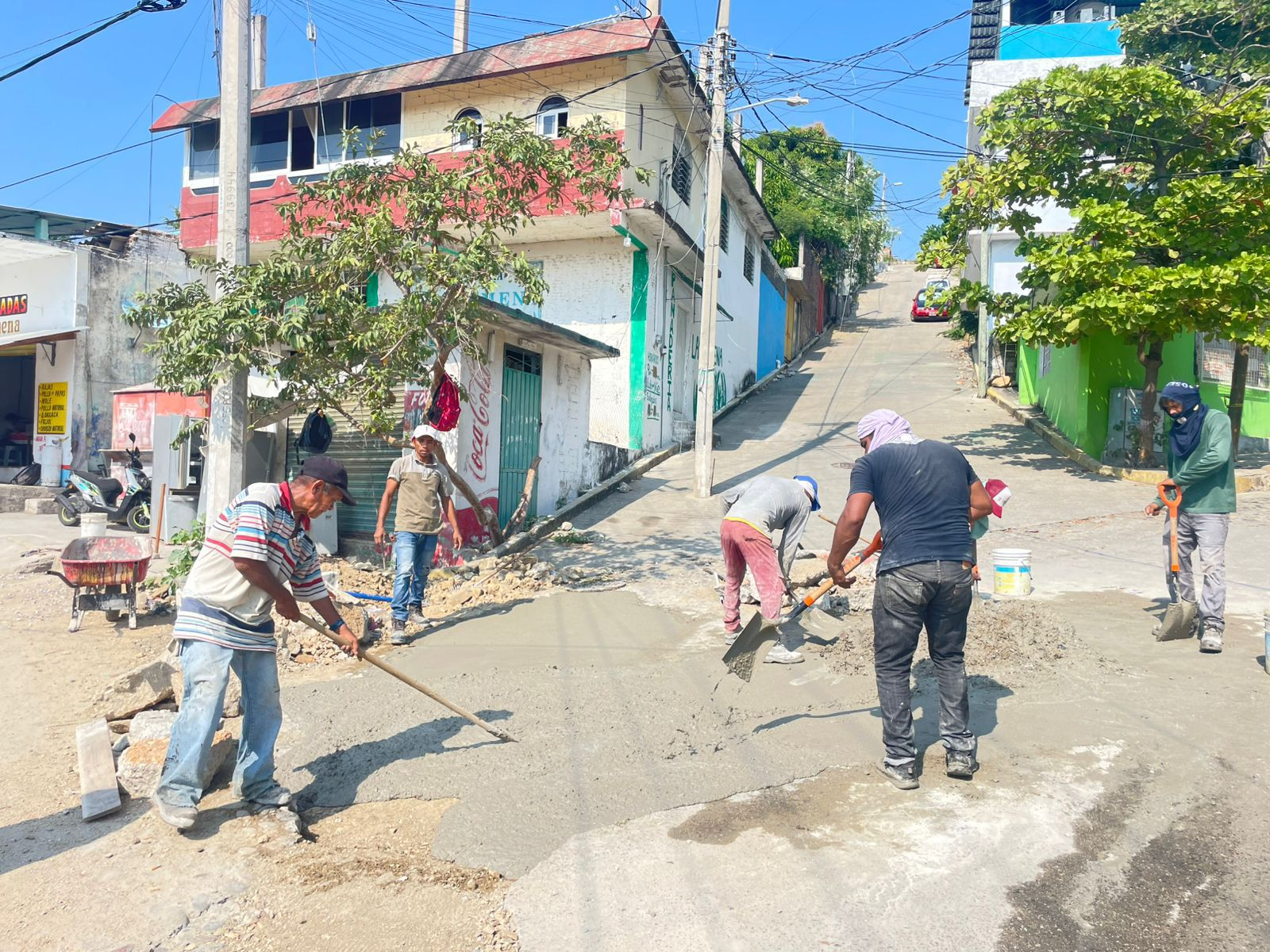 Acapulco, Gro., 06 de enero de 2026.- La Dirección de Maquinaria Pesada y Parque Vehicular coloca concreto hidráulico y atiende socavones menores en distintos puntos de la ciudad, con el propósito de mejorar la movilidad urbana.