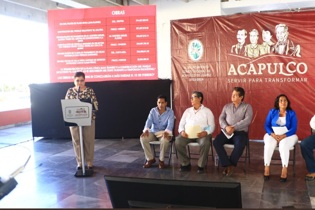 Refirió que actualmente se realizan diversas obras en el municipio como la rehabilitación de Plaza cívica Juan Álvarez, la construcción del parque incluyente “El Golfito”, la rehabilitación de banquetas en avenida costera Miguel Alemán, del tramo del Centro de Convenciones a la Diana, la construcción de drenaje sanitario en colector Nao Trinidad, tramo Torres Gemelas a calle El Morro, la rehabilitación de planta de tratamiento de aguas residuales Nao-Trinidad (cárcamo) de la colonia Costa Azul y la rehabilitación de la calle Diego Hurtado de Mendoza entronque con avenida Cuauhtémoc.