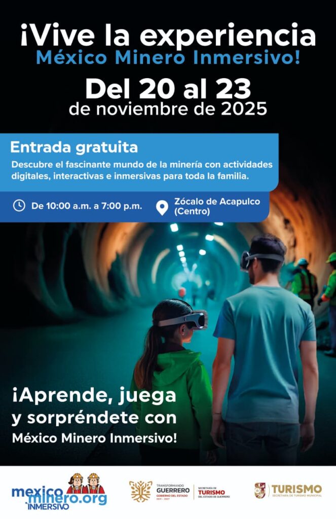 Acapulco, Gro., 19 de noviembre de 2025.- Con el objetivo de acercar a los más pequeños al conocimiento de la actividad minera de manera interactiva, el Gobierno de Acapulco, presidido por Abelina López Rodríguez, invita a la población a conocer la exposición México Minero Inmersivo.