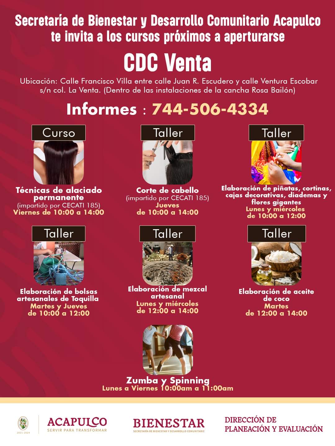 Acapulco, Gro., 23 de enero de 2024.- Con el objetivo de brindar a la población herramientas para el autoempleo, el Gobierno Municipal de Acapulco, a través de la Secretaría de Bienestar y Desarrollo Comunitario, invita a la población a los cursos y talleres próximos a aperturarse en el Centro de Desarrollo Comunitario (CDC) de La Venta.