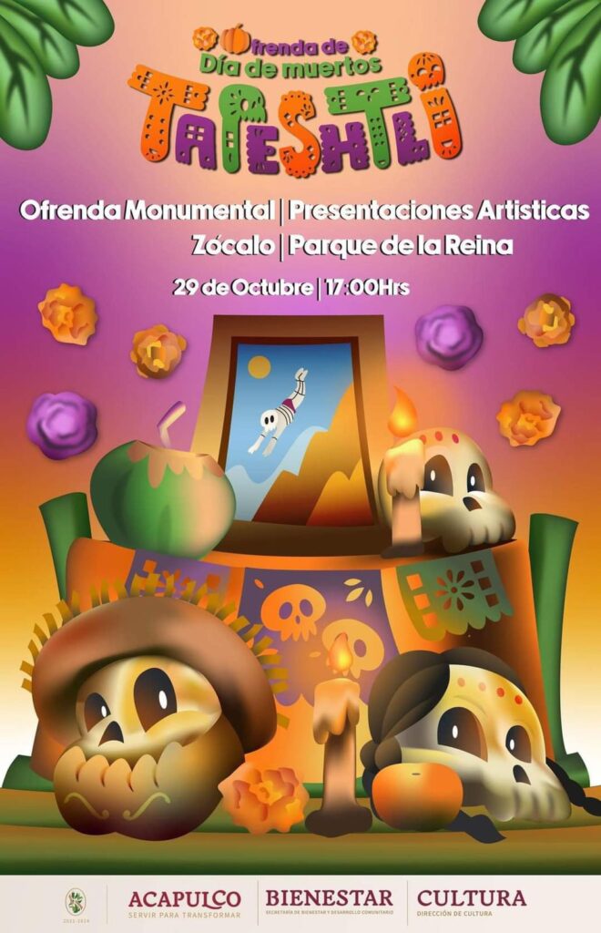 Acapulco, Gro., 26 de octubre de 2022.– Con la finalidad de preservar las tradiciones, recuperar la historia de Acapulco y generar un espacio de sana convivencia familiar, el Gobierno Municipal, a través de la Secretaría de Bienestar y Desarrollo Comunitario, dirigida por Leticia Lozano Zavala, lanza la convocatoria a participar en la ofrenda de Día de Muertos “Tapeshtli”, a realizarse el próximo sábado.