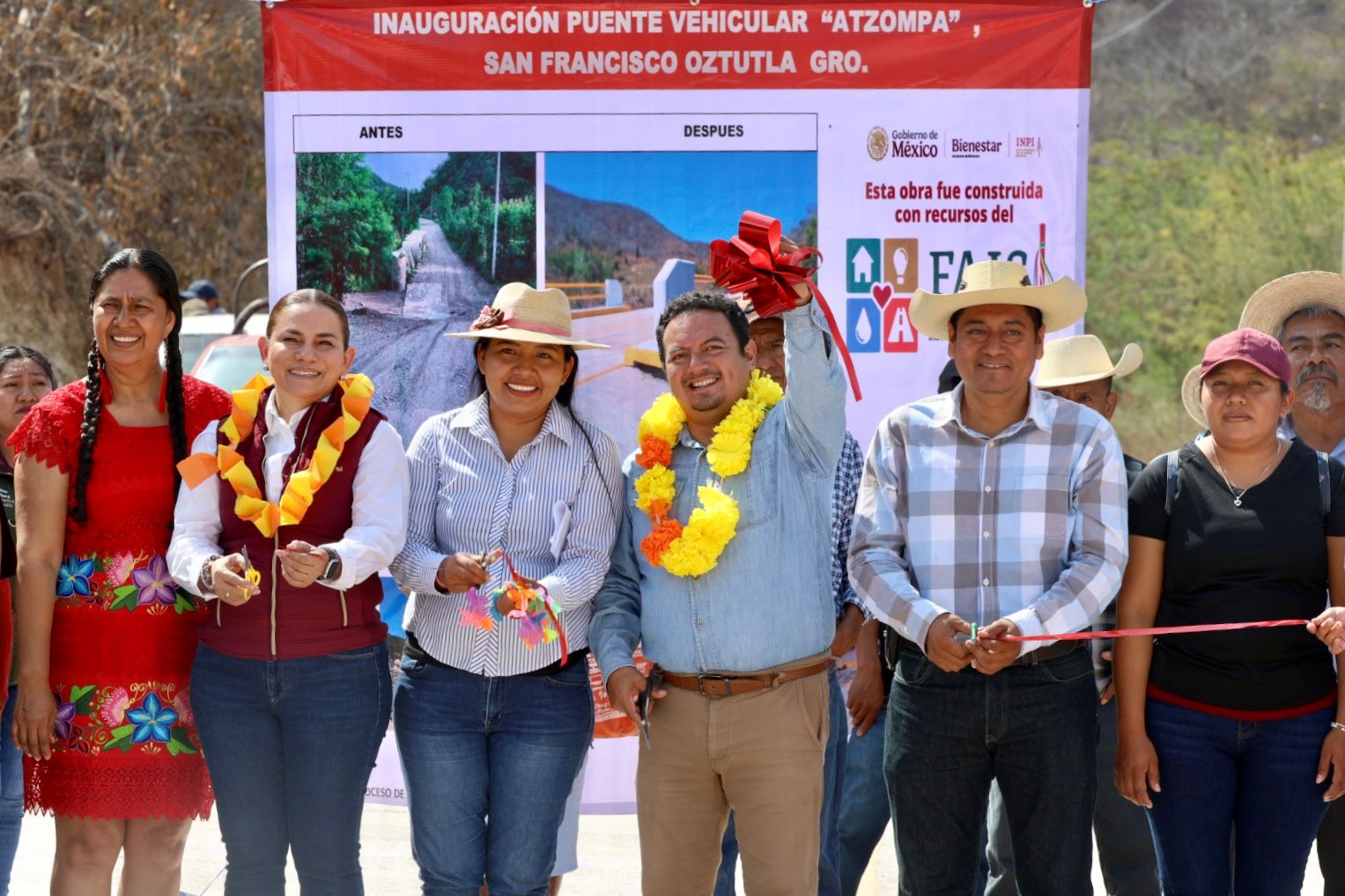 En la localidad de San Francisco Oztutla, el funcionario federal inauguró el puente vehicular Atzompa, construido con una inversión de 1 millón 726 mil 588 pesos provenientes del Fondo de Aportaciones para la Infraestructura Social de los Pueblos Indígenas y Afromexicanos (FAIS-PIAM).