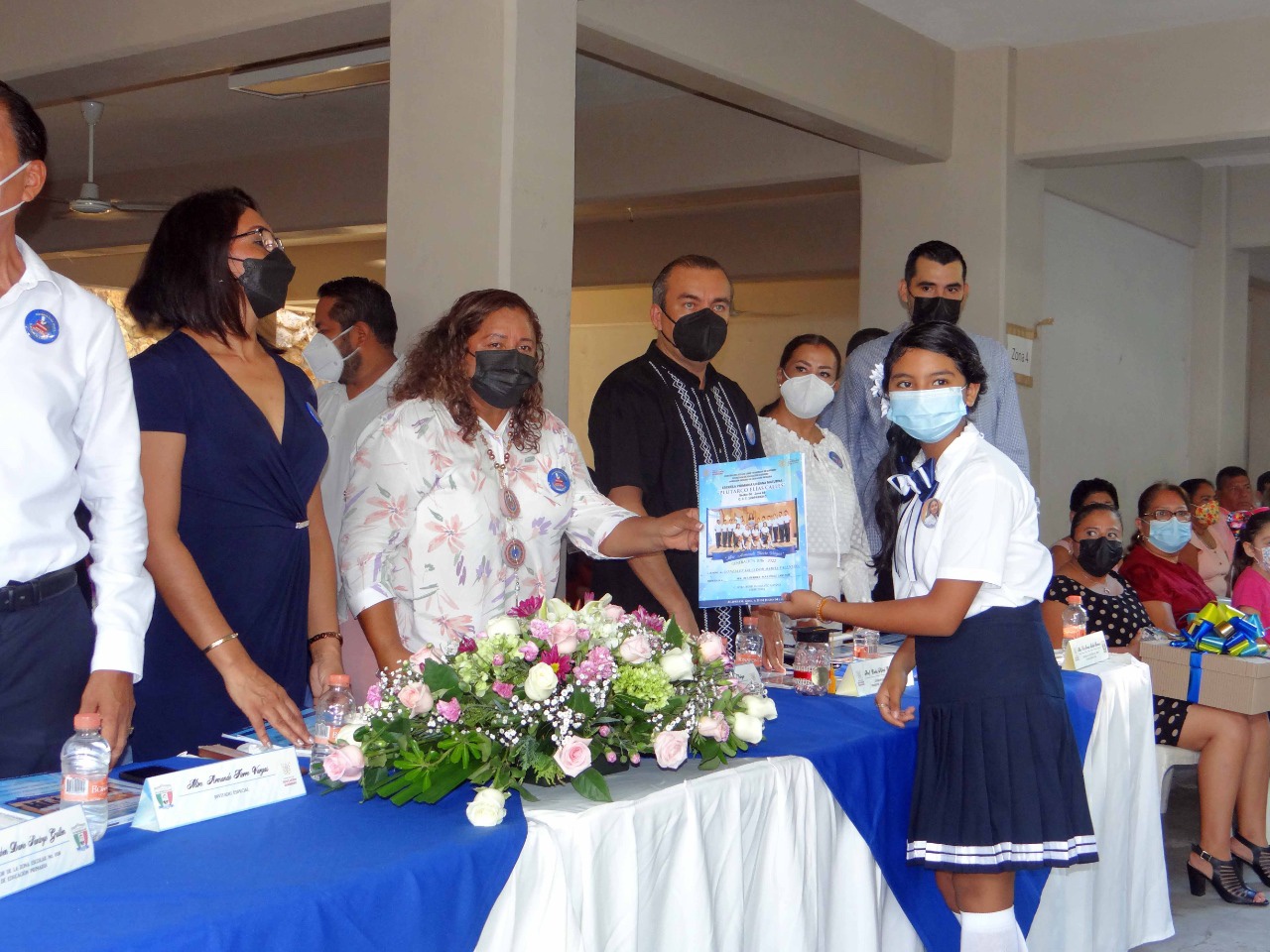 Por su parte, la directora de la institución, Roselia Chávez Alonso, rindió un informe del ciclo escolar 2021-2022, los logros y las dificultades a las que se enfrentaron por la pandemia del COVID-19, el esfuerzo para la adaptación a la nueva normalidad, a la educación a distancia y a las tecnologías.