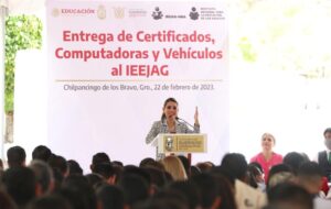 Chilpancingo Gro. 22 de febrero del 2023. – Con el objetivo de fortalecer las acciones para reducir el rezago educativo en Guerrero, la gobernadora Evelyn Salgado Pineda y la Secretaria de Educación Pública (SEP) Leticia Ramírez Amaya, entregaron computadoras y vehículos al Instituto Estatal para la Educación de Jóvenes y Adultos de Guerrero (IEEJAG) con una inversión de 7.7 millones de pesos, que permitirá intensificar la operación territorial de alfabetización en la entidad.