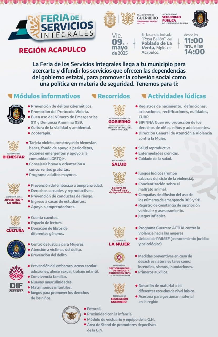 La Feria de Servicios Integrales del Gobierno de Guerrero llegará este viernes a la Venta en Acapulco