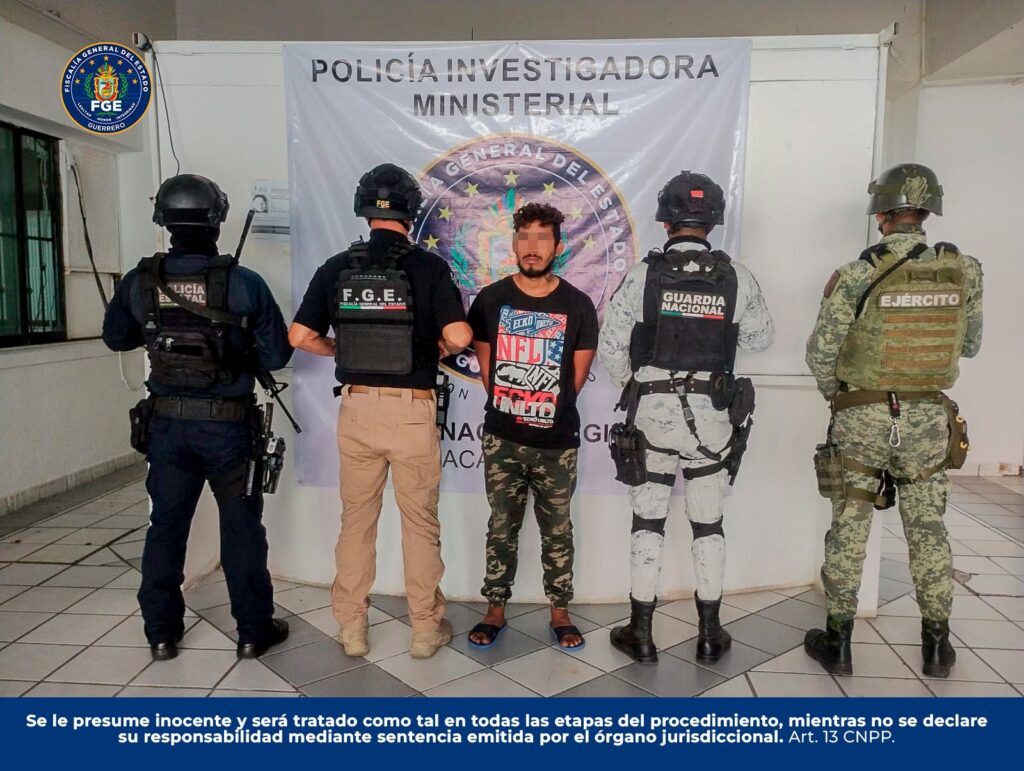 La FGE Guerrero, Ejército Mexicano, GN y Policía Estatal detienen a Elías “N” por el delito contra la salud en Acapulco.