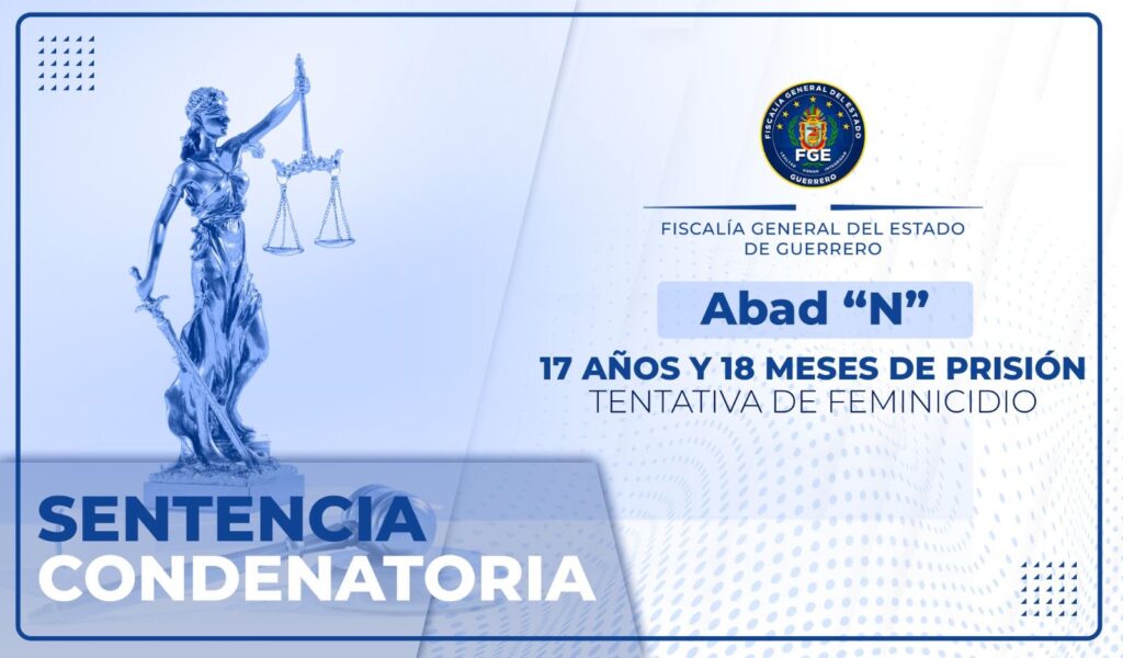 La FGE Guerrero logra sentencia de 17 años de prisión por tentativa de feminicidio.
