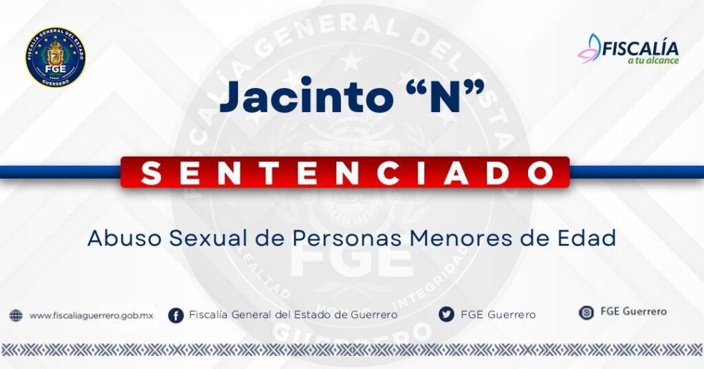 La FGE Guerrero logra sentencia de prisión en contra de Jacinto “N” por el delito de Abuso Sexual de Personas Menores de Edad.