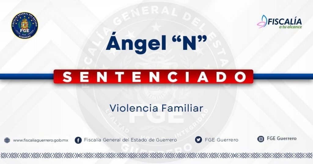 La Fiscalía General del Estado de Guerrero, inició las acciones correspondientes, para fincar responsabilidades por el delito de Violencia Familiar en contra de Ángel “N”, mismo que fue capturado y posteriormente vinculado a proceso penal.