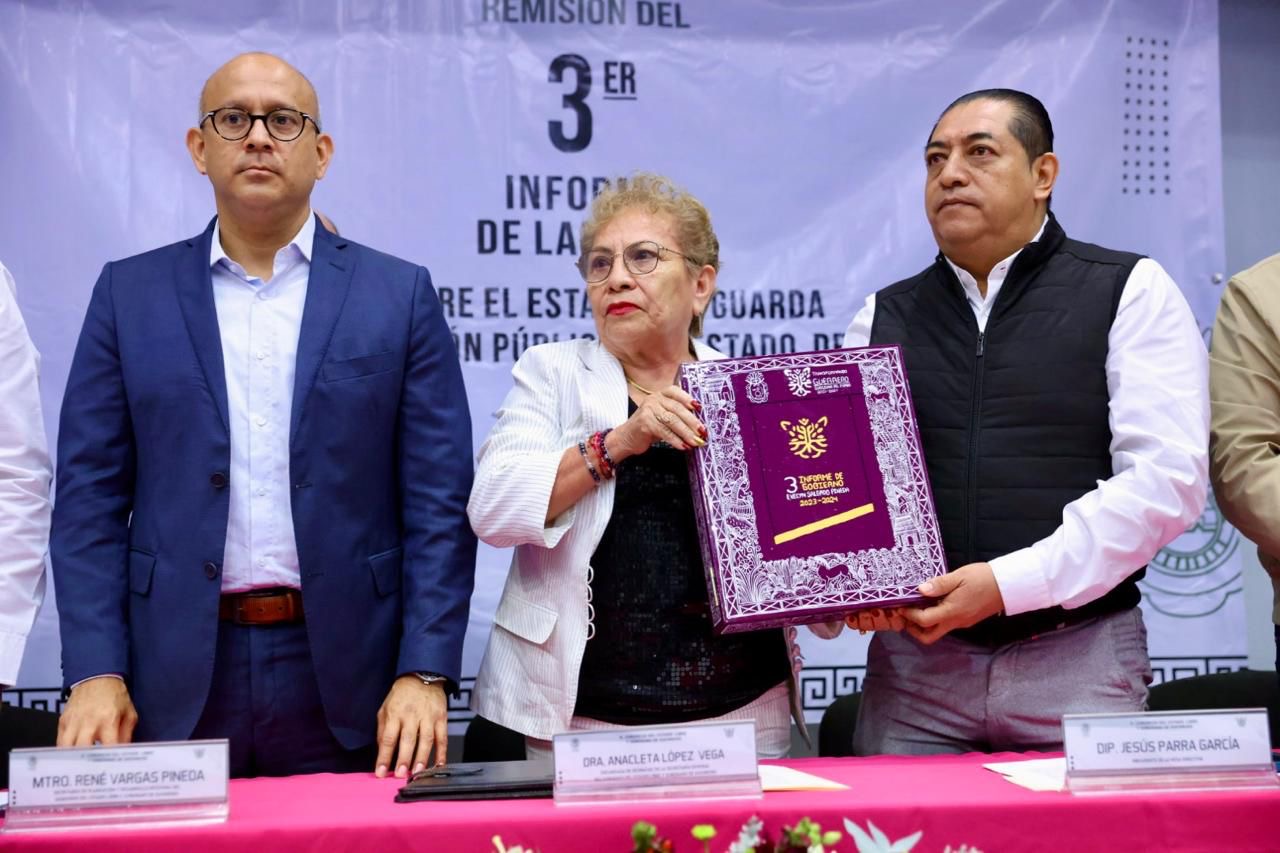 Una vez recibido el informe por escrito, el presidente de la Mesa Directiva, Jesús Parra García, señaló que el Poder Legislativo asumirá el compromiso de conducirse conforme a la Ley Orgánica del Congreso del Estado.