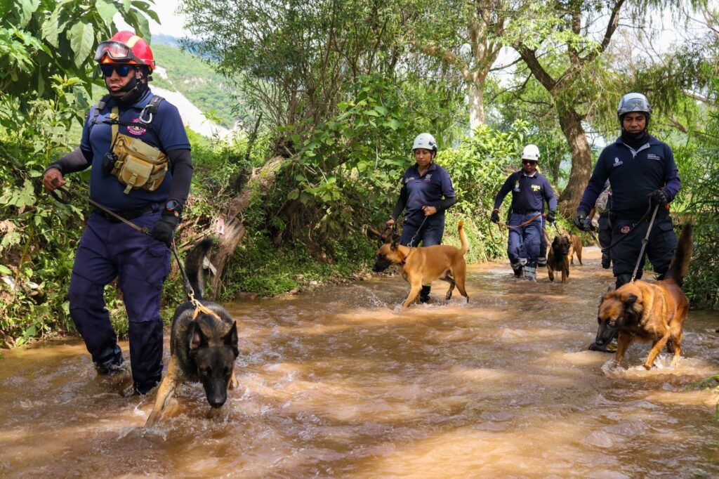 Chilpancingo, Gro., 14 de agosto de 2024.- Para fortalecer la capacidad de respuesta de los integrantes de la Unidad Canina de Búsqueda y Rescate de la Secretaría de Gestión Integral de Riesgos y Protección Civil, este miércoles se llevó a cabo un simulacro con hipótesis de persona arrastrada por la creciente de río, en el que participaron seis binomios caninos.